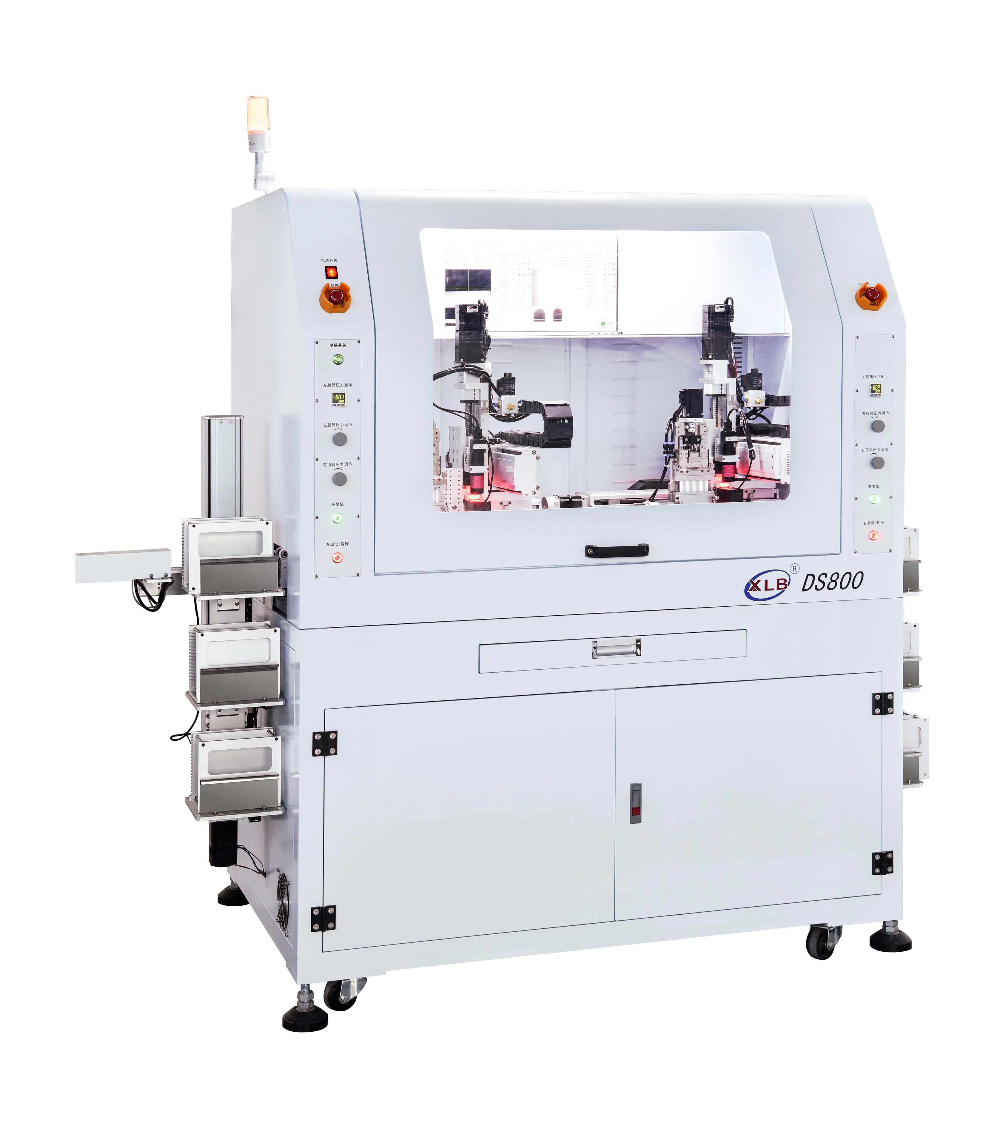 特點:1、全自動上料、下料功能,實現(xiàn)一人可同時操作多臺機器;2、CCD自動定位和針頭位置校正,保證產(chǎn)品點膠效果最佳;3、搭載螺桿容積計量式精密點膠閥,確保色溫分布更加集中;4、本系統(tǒng)可滿足對COB、LED貼片燈珠點膠精度高要求、推進高自動化車間的場合